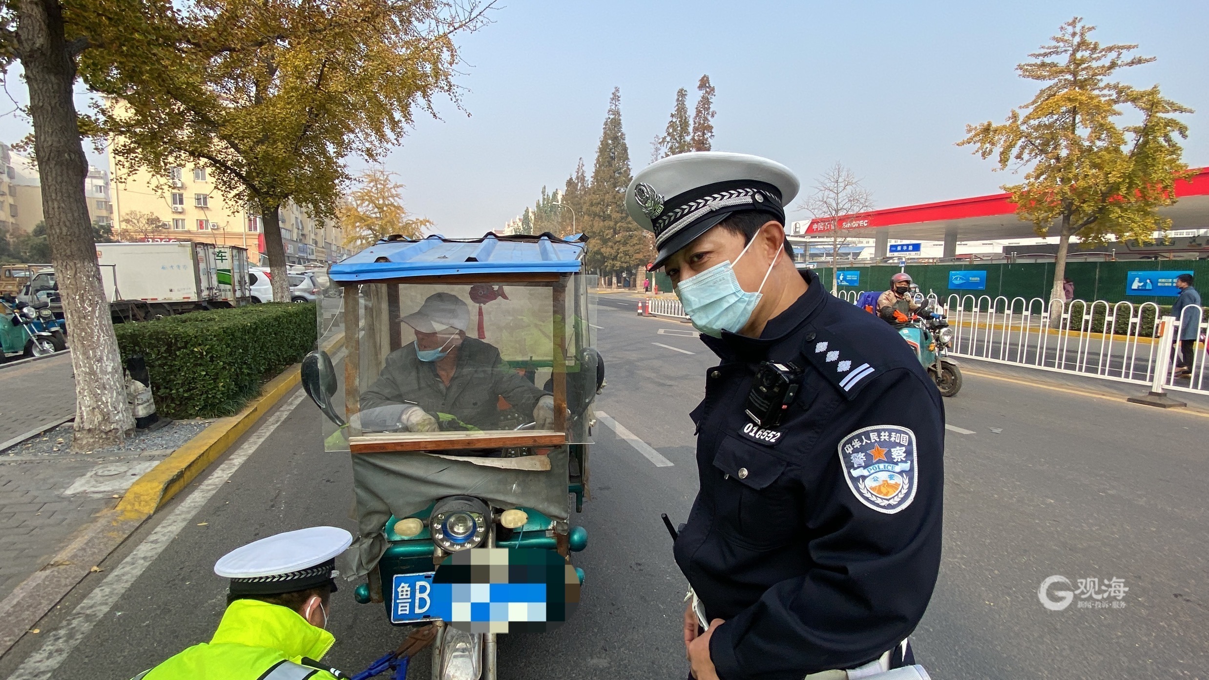 当时,一位70岁的驾驶人骑着电动三轮车沿振华路西向东行驶,旁边坐着一位年龄相仿的乘客。电动三轮车虽然有些陈旧,但车前悬挂的蓝色号牌鲁B97***却非常醒目,立即引起了执勤民警的注意。民警示意该电动三轮车停下接受检查。经了解,两位老人不是本地人,平时骑电动三轮车仅用于附近某小区内部垃圾运送。在收集垃圾的过程中,捡到了一个车牌,随手便装在电动三轮车上,方便进出小区门禁系统,压根儿没想到会触犯法律。