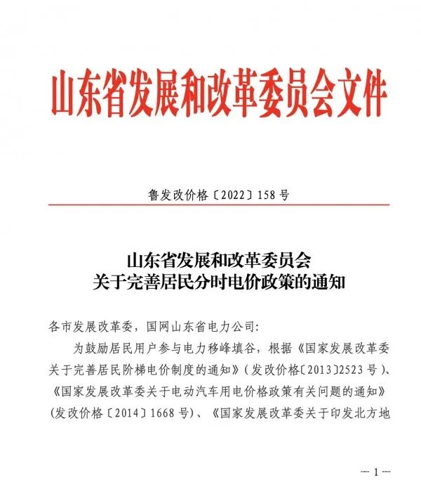 山东省发改委2022年3月2日发布《关于完善居民分时用电政策的通知》明确表示,在现行阶梯电价标准基础上,峰段电价每千瓦时提高0.03元(含税,下同);谷段电价降低0.17元。即第一档峰段电价为0.5769元、谷段电价为0.3769 元,第二、三档峰、谷电价分别在第一档峰、谷电价基础上加价0.05元、0.3元;其中采暖期谷段电价由降低0.17元调整至降低0.2元。即第一档峰段电价为0.5769元、谷段电价为0.3469元,第二、三档峰、谷电价加价标准不变。