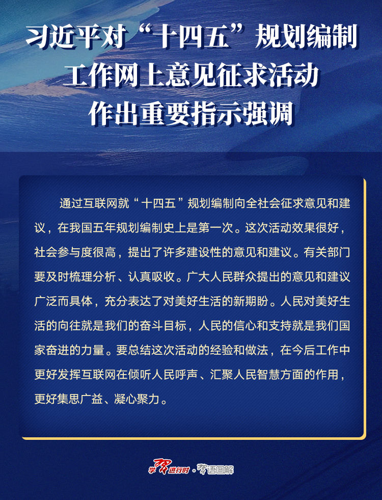 前不久,“十四五”规划编制通过互联网向全社会征求意见和建议,这在我国五年规划编制史上是第一次。这次活动社会反响热烈,累计收到网民建言超过101.8万条。