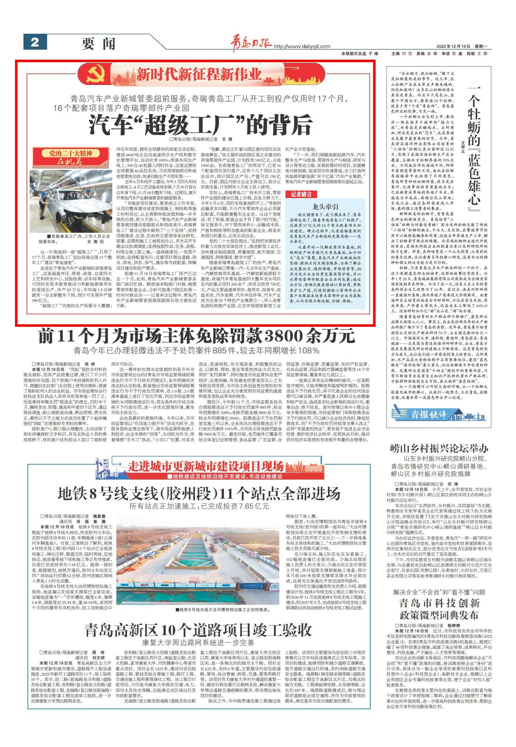 青岛汽车产业新城管委超前服务,奇瑞青岛工厂从开工到投产仅用时17个月,16个配套项目落户奇瑞零部件产业园