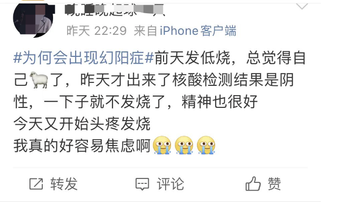 上述专家表示,从心理学专业来说当然不存在“幻阳症”,“幻阳”的出现,反映的其实是大家在面对短期内疫情发展迅速变化,心理上出现的不适应状态。调侃“幻阳”的背后,是大家对阳了之后未知情况的焦虑:青少年担心影响学业、中年人担心工作进度受影响同时又担心家中老人孩子感染、老年人担忧对身体状况的危害等等。