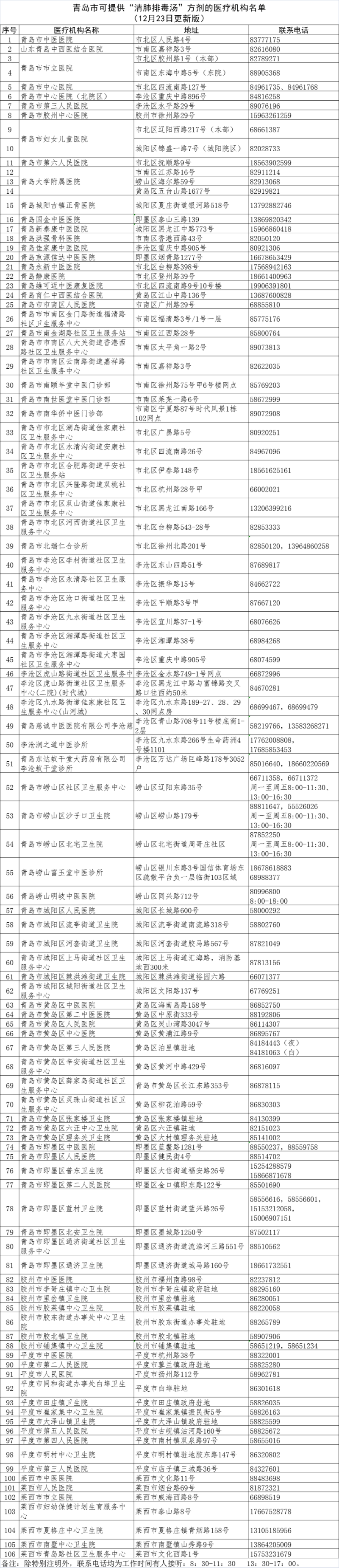 12月21日,我委公布了可以提供“清肺排毒汤”方剂的医疗机构信息,受到广大市民朋友的欢迎,部分机构相关中药饮片迅速告罄,现将调整后的机构名单公布如下。市民朋友可就近选择能够提供该方剂服务的医疗机构,并在医师指导下服用方药。各医疗机构应做好用药咨询、指导、随访等工作。