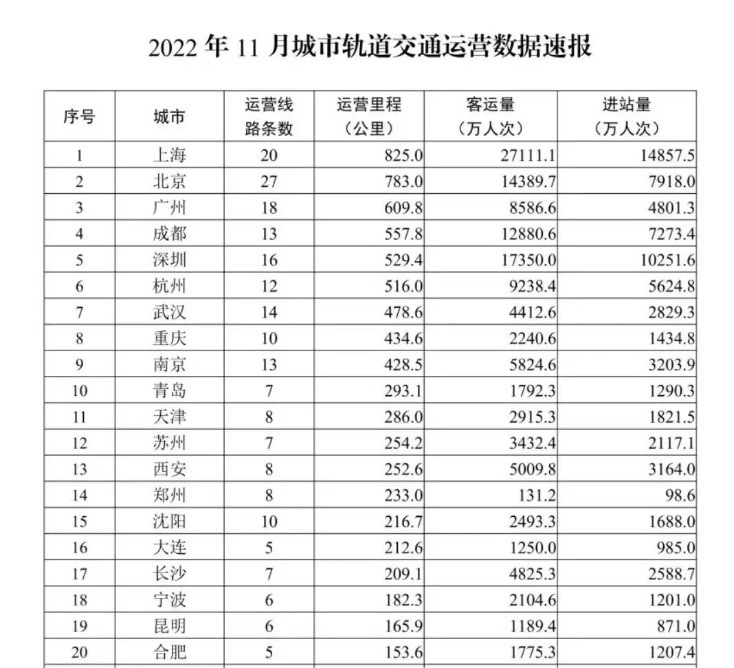 但也要看到,受线网没有成网运行影响,青岛已建地铁客运分担不均衡,青岛地铁客运量总体上相对较低。交通运输部发布的2022年11月城市轨道交通运营数据速报显示,当月青岛客运量为1792.3万人次,远低于通车里程排名在青岛之后的天津(2915.3万人次)、苏州(3432.4万人次)、西安(5009.8万人次)等地。