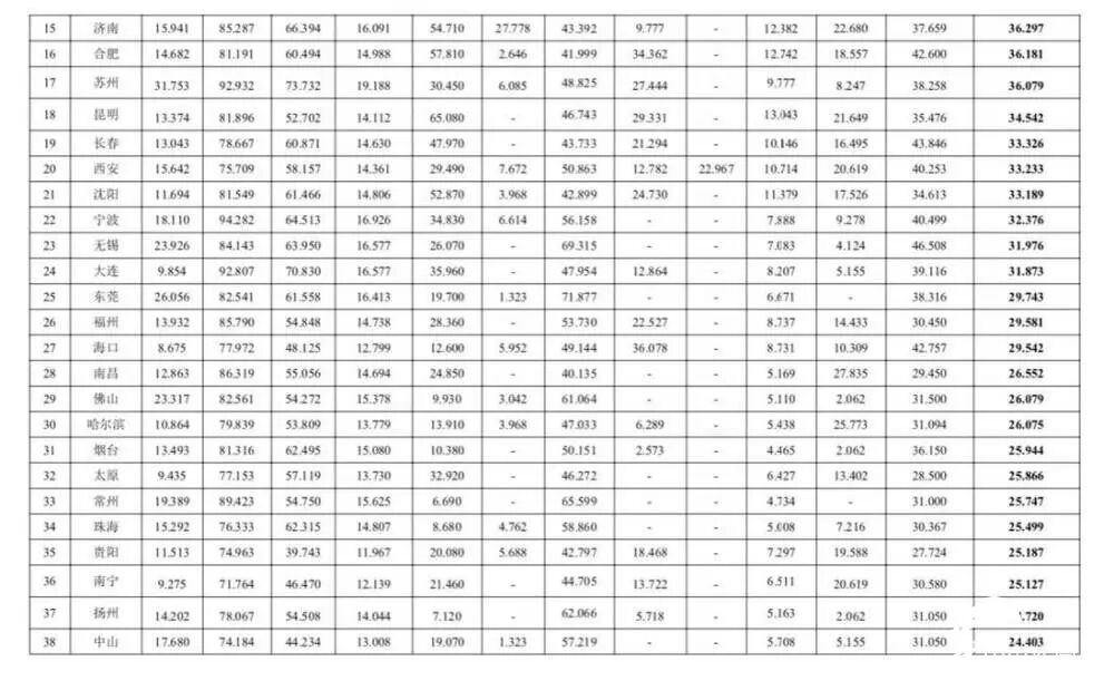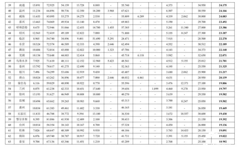 记者注意到,山东共有14个城市上榜,发展十分均衡。其中,青岛和济南处于领先地位,青岛位居第11,济南位居第15。此外,烟台、威海、临沂、东营、潍坊、泰安、济宁、日照、聊城、枣庄、德州、菏泽也成功入围。从2016-2019年总榜综合来看,青岛排名全国第11,济南排名第13。