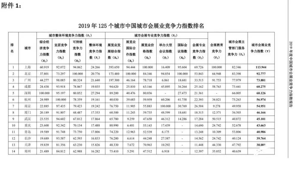 据了解,这已经是中国会展经济研究会连续五年发布国内城市会展业竞争力指数,该指数是目前中国会展行业最具权威性、科学性的评估指数。本次发布的2019年指数报告统计分析了全国125个主要城市,是在之前研究成果的基础之上,经过中国会展经济研究会及学术指导委员会、成都研究中心城市会展业竞争力大数据研究中心的精心策划、科学研究,最终根据模型得出测算结果,指标下设4个一级指标、10个二级指标、44个三级指标、63个四级指标。