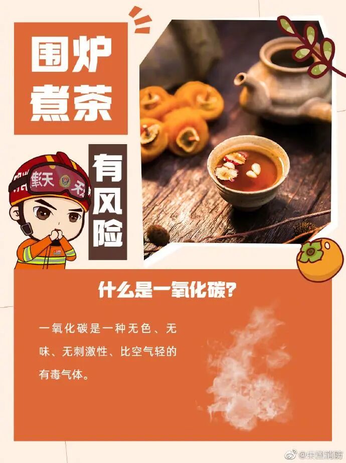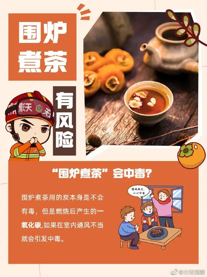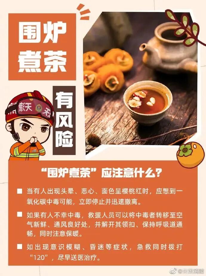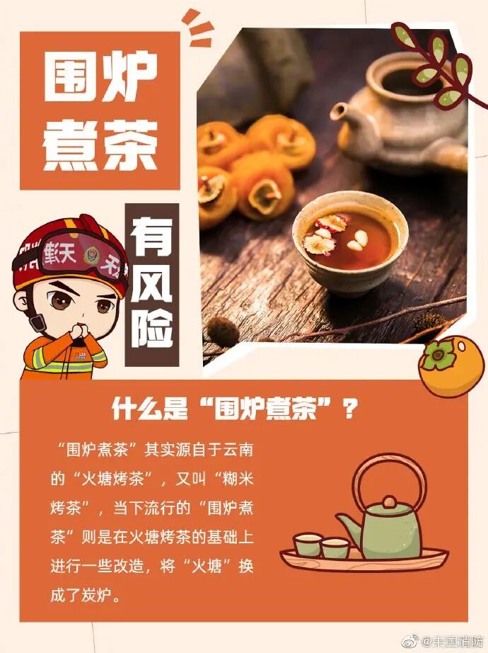 大家在享受茶香四溢,烟火氤氲同时,一定要注意消防安全:切记可燃物远离炉火,不要在室内点燃火盆......更多知识,戳图了解↓
