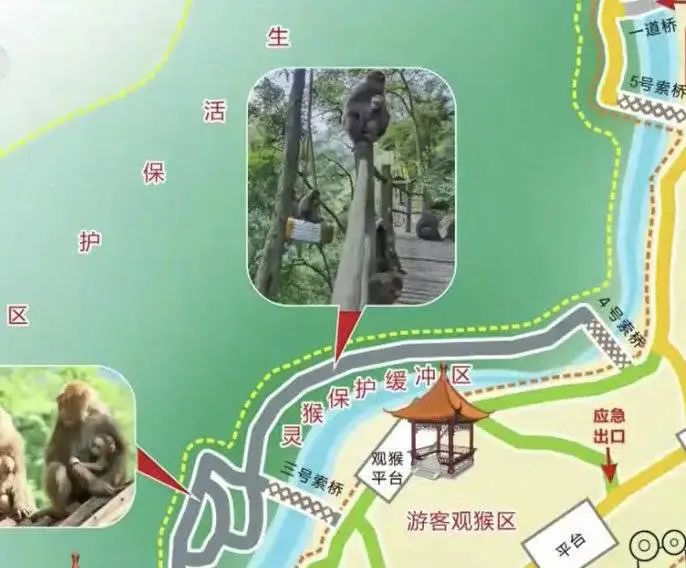 猴群出没区域划分“灵猴生活保护区”“灵猴保护缓冲区”“游客观猴区”三大独立区域。