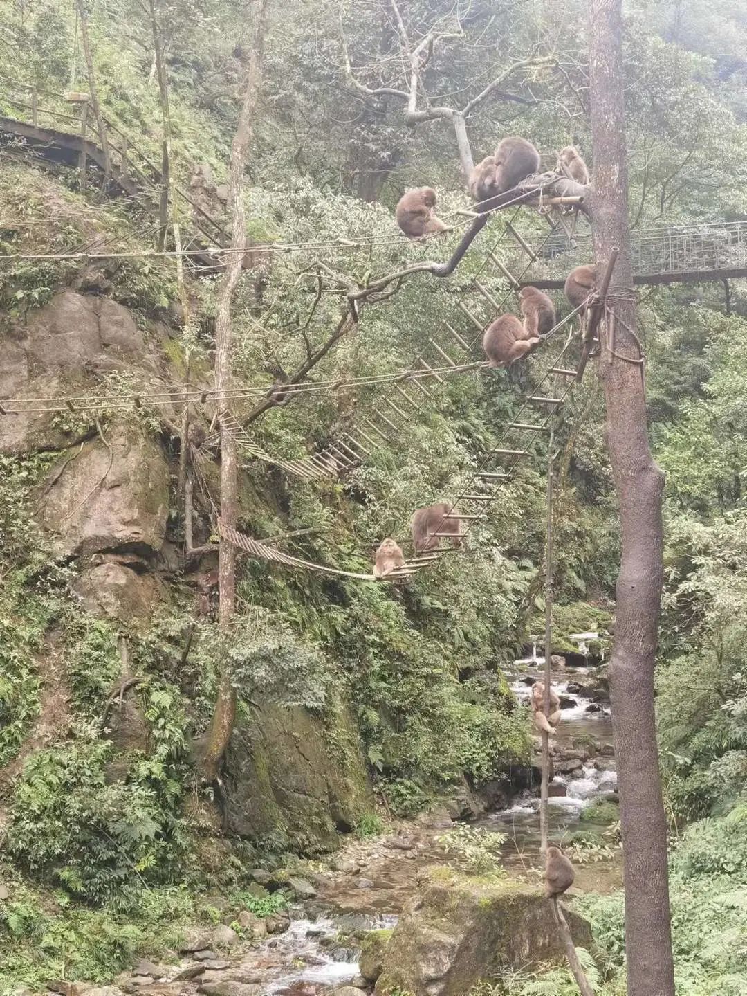 峨眉山猴子为藏猕猴,也叫藏酋猴,俗称“峨眉猴”“大青猴”“老青猴”,又因长期生活在佛教名山,故妙号“猴居士”,属国家二级保护野生动物,以多种植物的叶、芽、果、枝及竹笋为食,兼食昆虫、蛙、鸟卵等动物性食物。景区自然分布约15群500余只,既有一定灵性,又野性犹存。