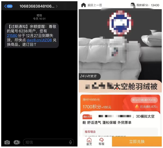 近期,中国消费者协会曝光了不法商家利用积分到期催办兑换相应商品或服务涉嫌误导消费的行为。中国消费者协会发现这些所谓积分兑换商城中充斥了大量假冒伪劣产品。如“积分兑换商城”中用1700积分+188元就能兑换一条原价1888元的“加拿大鹅”羽绒被,事实上,加拿大鹅公司从来都没有羽绒被产品。