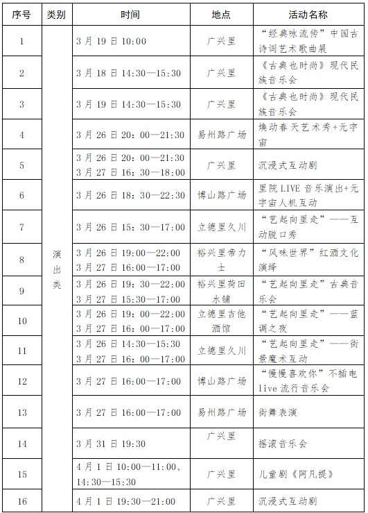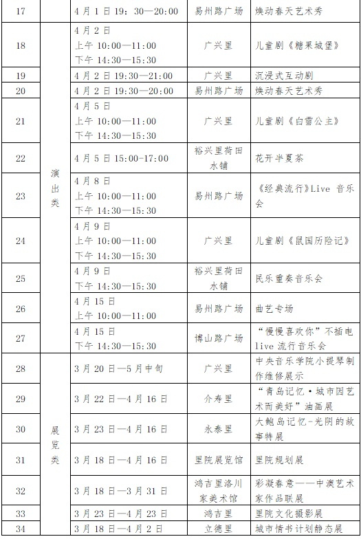 城市艺术节活动排期表: