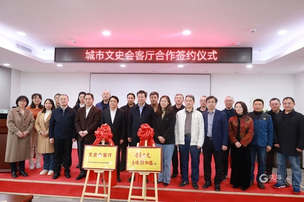 青岛日报社/观海新闻3月21日讯 打造文史之家,讲好青岛故事。青岛报业传媒集团与青岛市档案馆联合打造的城市文史会客厅今天揭牌。青岛报业传媒集团、市档案馆负责人及市社科院、市政协文史馆等文史自媒体联盟成员代表出席揭牌仪式。