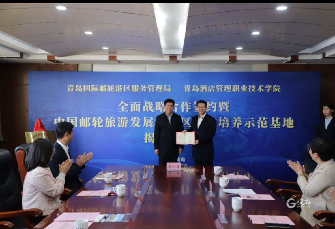 青岛日报社/观海新闻4月8日讯 4月7日,青岛国际邮轮港区服务管理局与青岛酒店管理职业技术学院举行全面战略合作协议签约暨“中国邮轮旅游发展实验区人才培养示范基地”揭牌仪式。