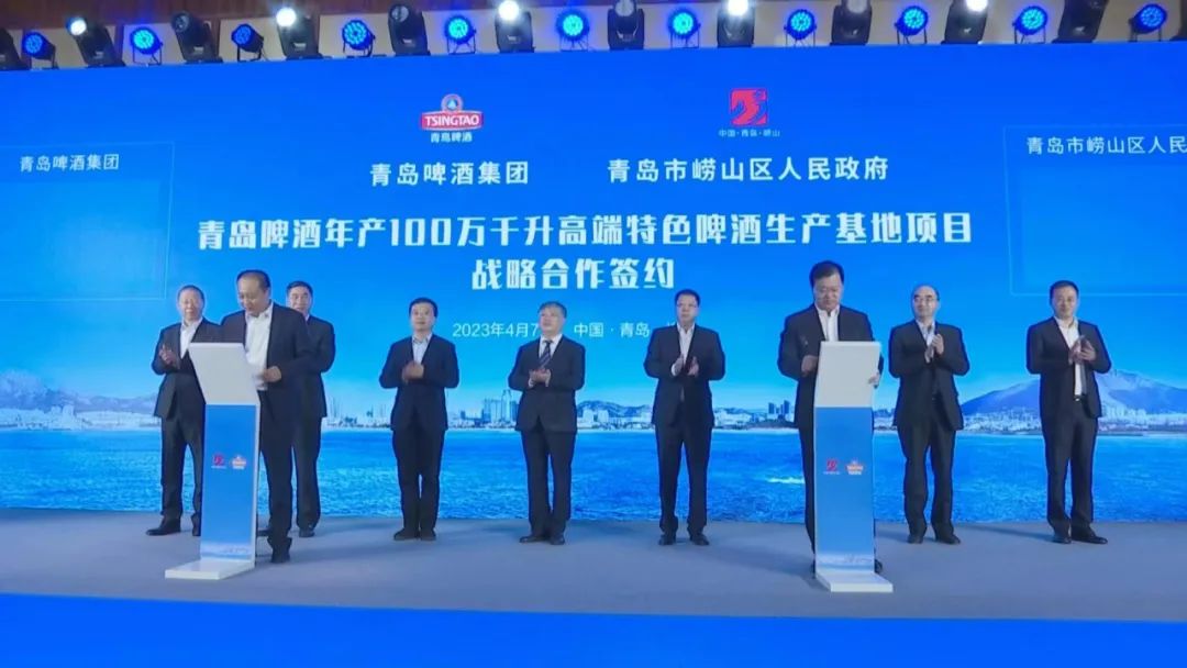 4月7日,青岛市崂山区人民政府与青岛啤酒集团举行签约仪式,青岛啤酒年产100万千升高端特色啤酒生产基地项目正式落子崂山。该项目将融合“高端特色啤酒、威士忌生产、时尚酒吧、文化旅游”等多业态集聚发展于一体,计划2024年底建成投产。