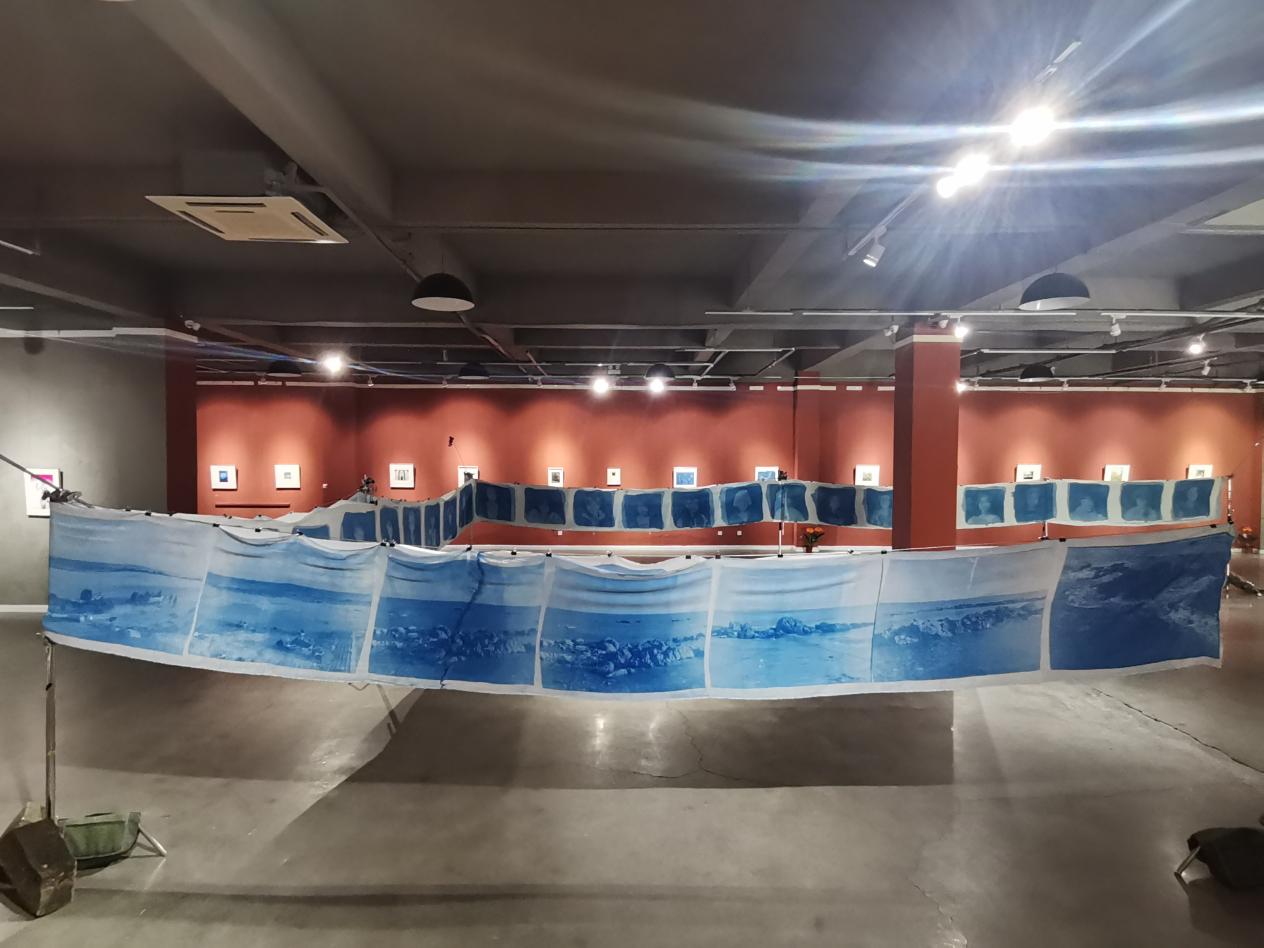 记者展览现场看到,展出作品聚焦现实生活,呈现出鲜明的数字影像技术的特点。例如30米长的巨幅作品《万里山海图》通过蓝晒印相工艺,选用丝绸作为材质,完美展现青岛海岸的山形礁石与壮阔海面,这也是本次展览的一大亮点。