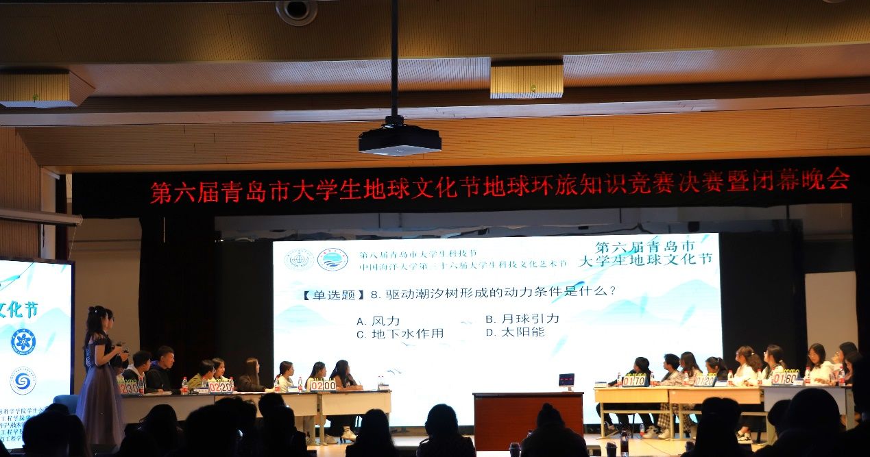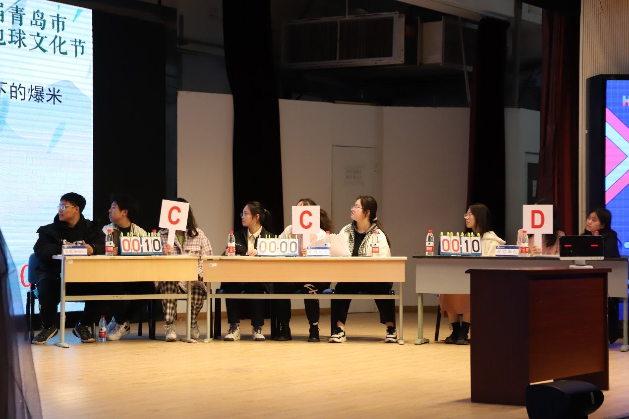 其中,地球环旅知识竞赛经过初赛的激烈角逐,中国海洋大学“碱基配队”、中国科学院大学“说的都队”、山东大学“喃玻烷队”、中国石油大学(华东)“高数全做队”、青岛大学“拉拉队”、山东科技大学“一片空白队”六支队伍会师决赛。