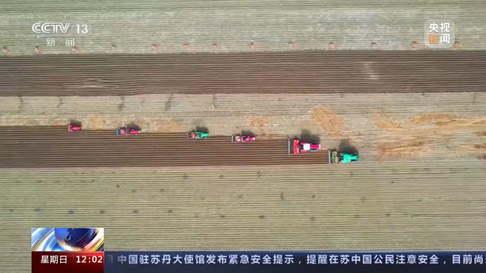 目前,我国东北地区的春耕备耕工作全面展开。在辽宁鞍山台安县茨于村,6台大马力拖拉机正牵引着深翻犁与起垄机在田间来回穿梭,仅用10分钟就完成了三亩土地深翻起垄作业。今年,台安县调动一万七千多台农机具投入春耕备耕生产,全县机械化播种率达94%,保证粮食种植面积100万亩以上。