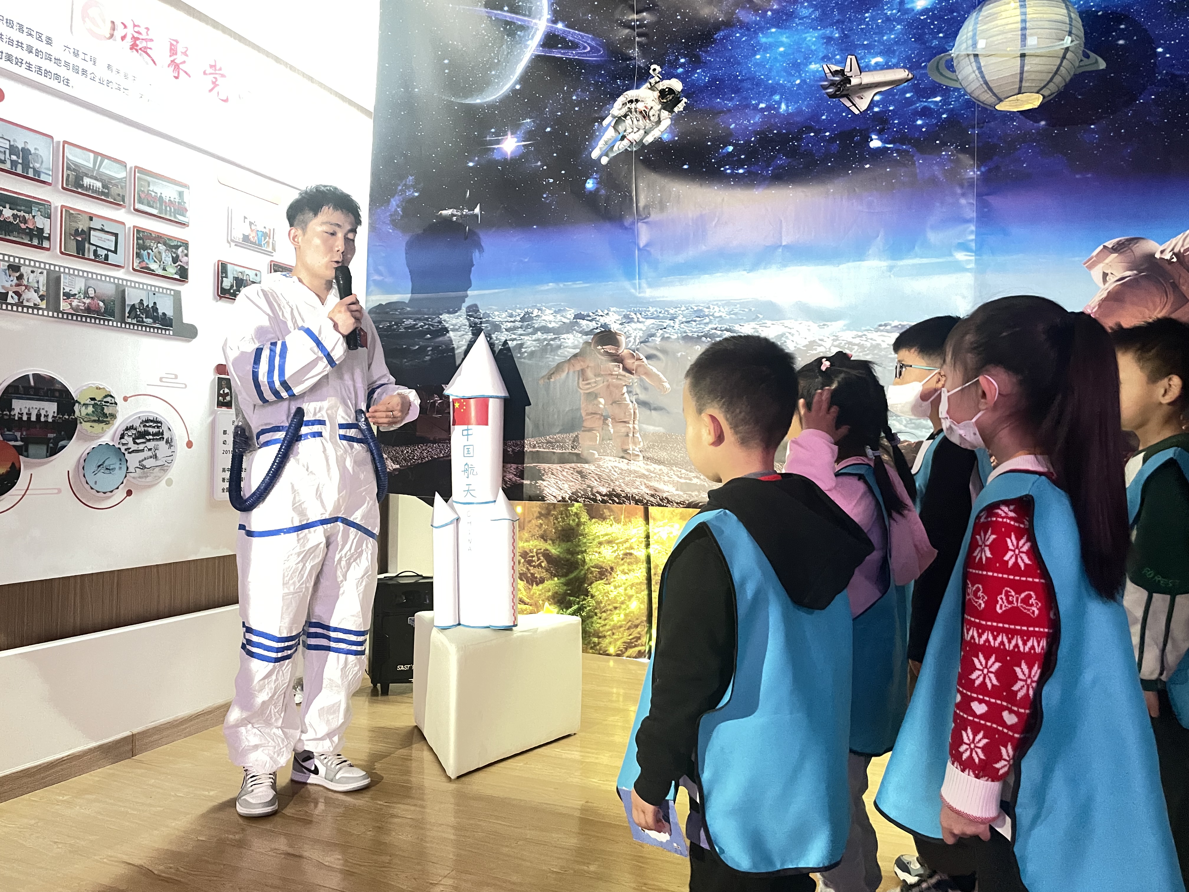 “我的愿望是长大当一名宇航员,遨游太空。如果我做一名宇航员,我想到月球去教外星人写汉字。”“宇航员都吃什么呢?他们是怎么飞到太空中去的呢?”在少儿科普主题活动现场,孩子们围绕在社区科普老师身边,用稚嫩的声音兴奋地畅想着自己的航天梦,在心中播下好奇的“飞天种子”。