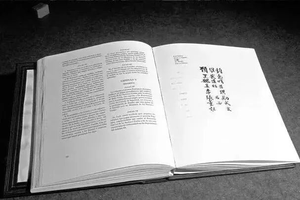 汉字留在了《联合国宪章》签署区的第一行。联合国成立之初,就确定中文为五种语文(其他是英、俄、法、西)之一。