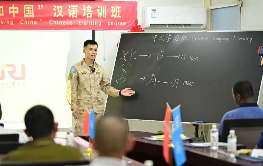 中国第13批赴南苏丹(瓦乌)维和工兵分队汉语培训班成功开课。这是我维和部队首次面向联南苏团开设汉语培训班,来自各国任务分队军事和民事人员共24人参加了开班仪式。工兵分队汉语教学的同时,还穿插中国功夫、书法绘画等传统艺术,向外国友人传播了中华文化。