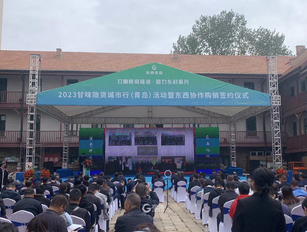 青岛日报社/观海新闻4月21日讯 今天上午,2023甘味陇货城市行(青岛)活动暨东西协作购销签约仪式在市北区大鲍岛文化休闲街区举行。陇南市委书记张柯兵出席并宣布活动启动,青岛市委常委、秘书长常红军出席并致辞。