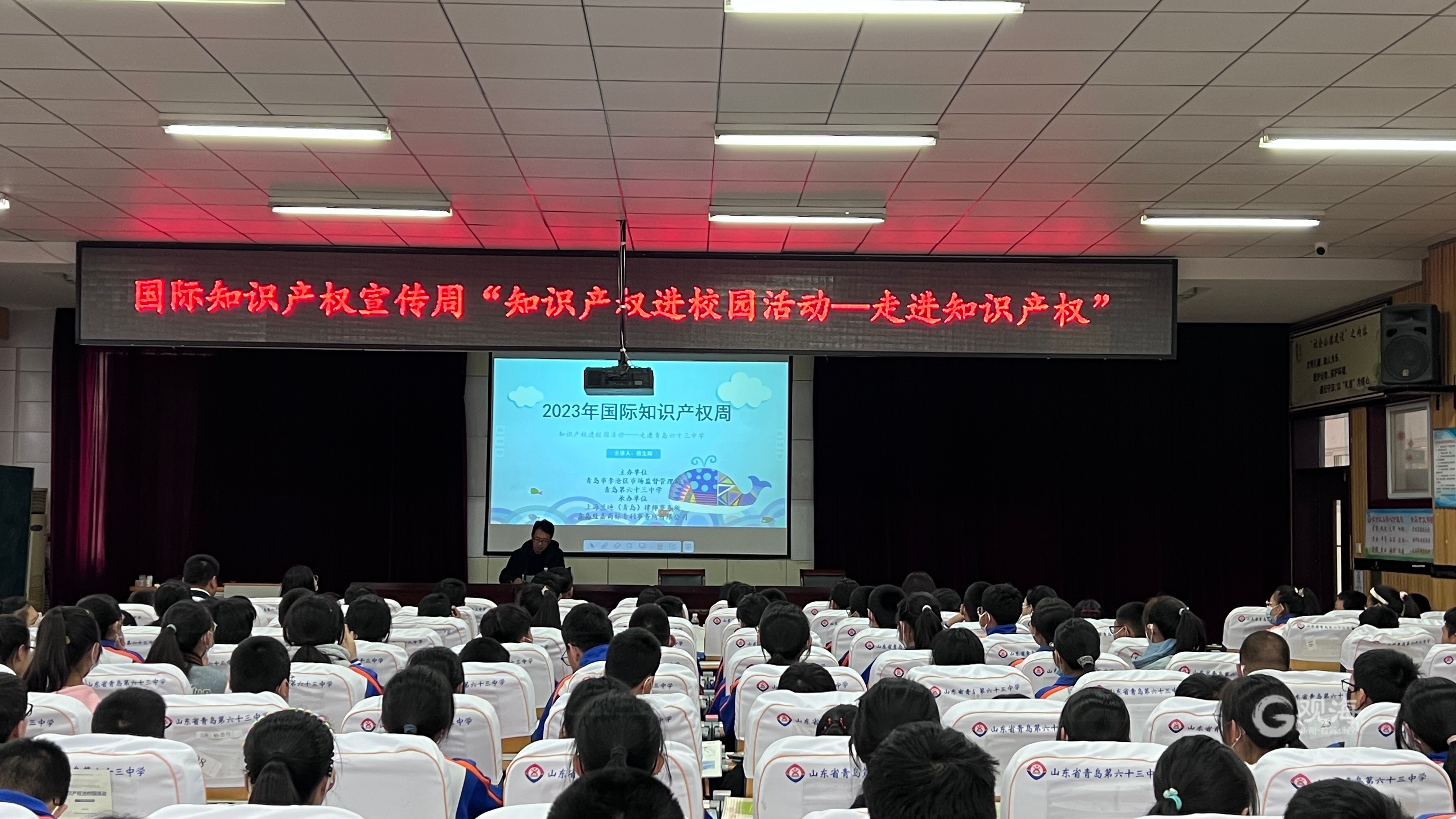 青岛日报社/观海新闻4月24日讯 在第23个世界知识产权日来临之际,为进一步提升中小学生知识产权意识,树立知识产权保护理念,让“尊重知识 勇于创新 诚信守法”知识产权意识植根校园,近日,李沧区市场监管局联合上海(兰迪)律师事务所、青岛致嘉商标专利事务所有限公司,共同走进青岛第六十三中学,开展了以“加强知识产权法治保障 有力支持全面创新”为主题的知识产权进校园活动。