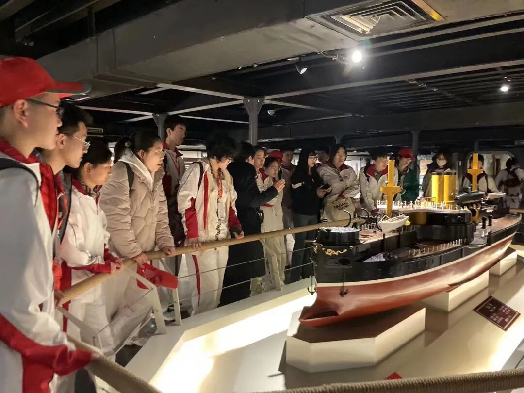 参观结束后,同学们开展自由讨论,交流研学体会。甲午海战如一面镜子,照见屈辱的历史,告诉我们落后就要挨打,也如一座时代警钟,指引我们前进的方向,激励我们在党的领导下以更加坚定的信念、更加自觉的行动投入到中华民族伟大复兴的新征程中。