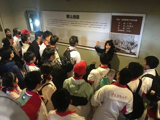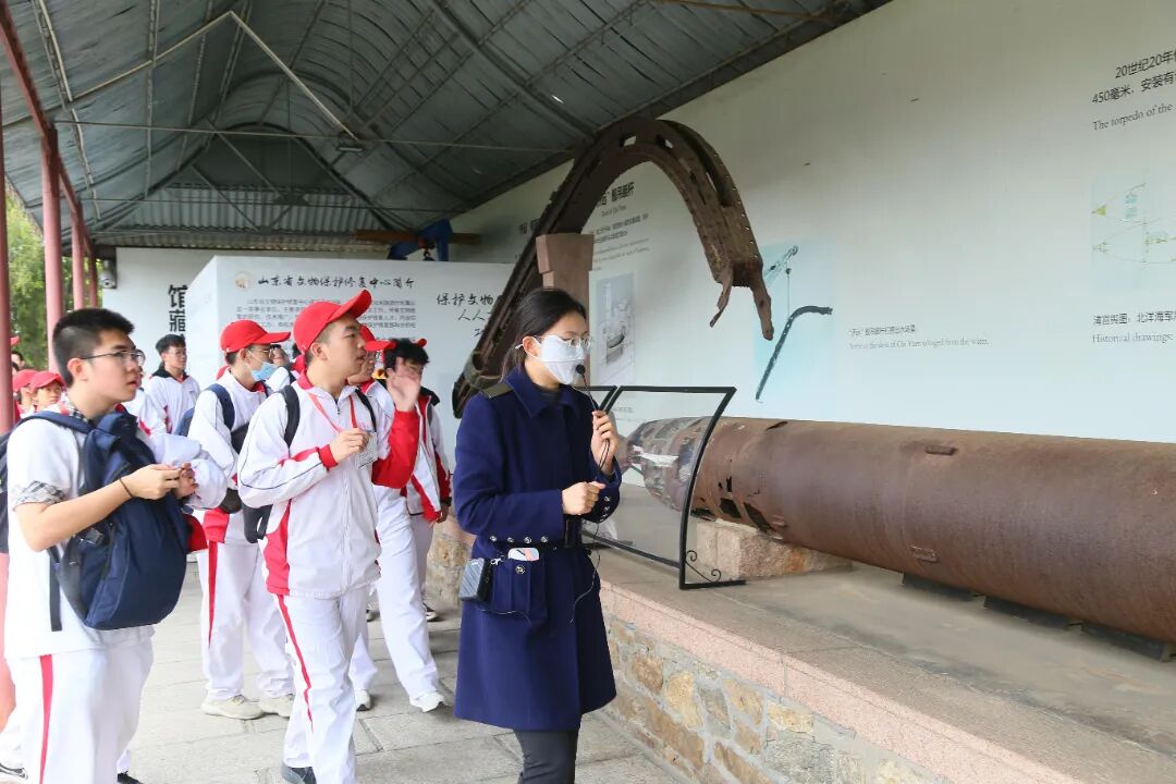 登岛后,在讲解老师的带领下,同学们直奔甲战争博物馆而去。通过馆内千余幅历史照片、三百多件珍贵文物,以及大量影像资料,全方位学习甲午战争整个历程,感悟中华民族“梦碎、梦醒、筑梦、圆梦”的复兴之路。同学们很快沉浸在这庄严肃穆的氛围里感慨“就是在这里,整个北洋舰队全军覆没,定远舰沉没于幽深的海底数年,刘公岛见证了中日甲午战争的悲壮和创痛。”