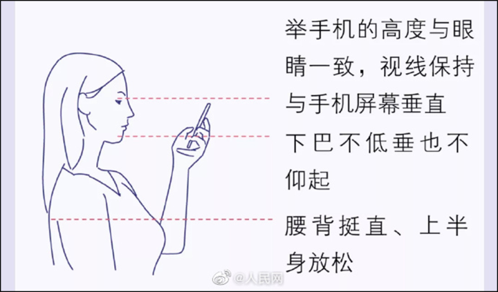 看手机时,可将手机放在与视线平行位置,且手机与脸的距离要保持33~35厘米;屏幕不要太亮,另外,不建议在黑暗环境中长时间使用手机。