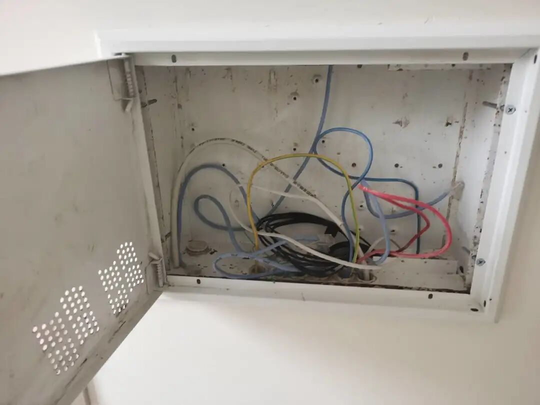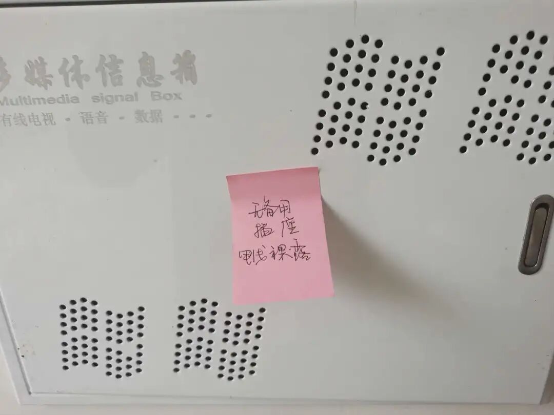 在卫生间,验房师还发现不少电路问题,镜前灯和插座同路。按照正确的走线标准,普通插座一路,灯具一路,厨房和卫生间插座各自一路,空调各自一路,而现在,镜前灯和插座混为一路,不符合安全用电要求。说到电,验房师还发现所有多媒体箱无备用插座,内部电线裸露;三层、四层阳台露天灯位没有防水装置,这些都是极大的安全隐患。