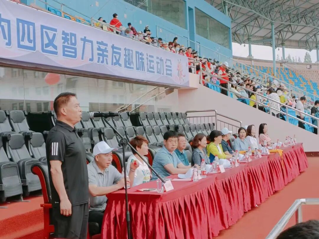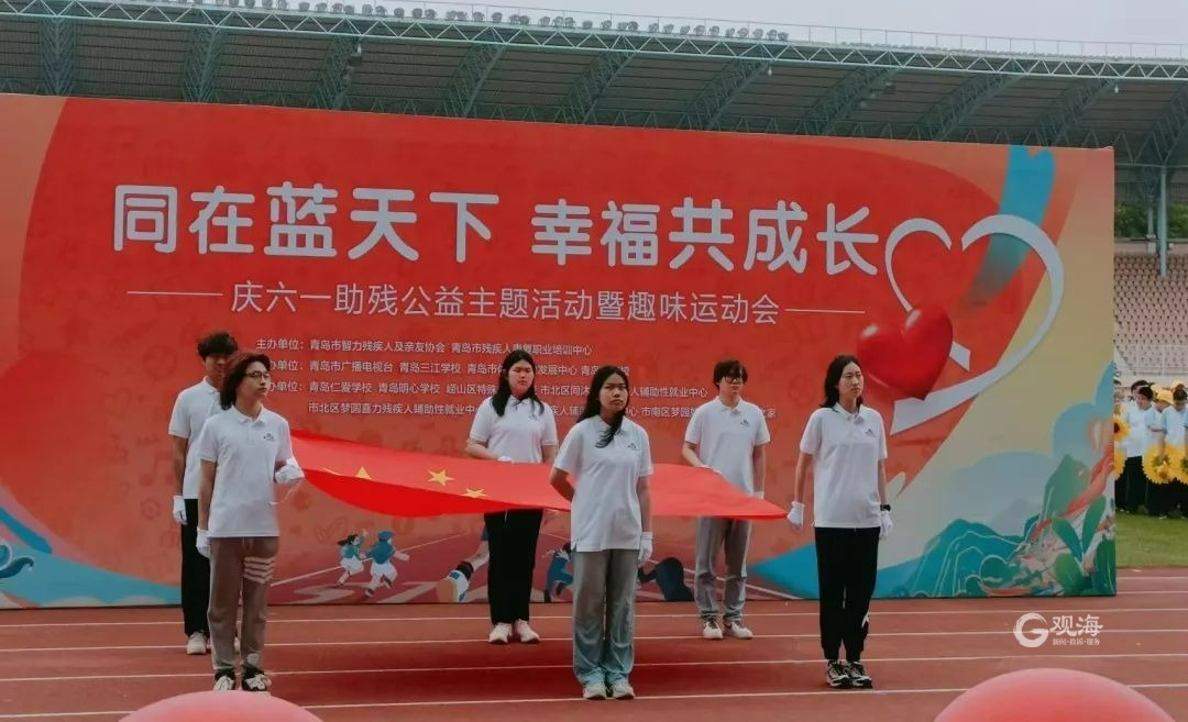 为增强特殊群体健康意识,搭建特殊群体平等参与社会交流平台,积极营造残健共融的社会氛围,今天上午,由青岛市智力残疾人及亲友协会、青岛市残疾人康复职业培训中心主办,青岛市广播电视台、青岛三江学校、青岛市体育产业发展中心、青岛市盲校承办,青岛仁爱学校、青岛明心学校、崂山区特殊教育学校、市北区同沐阳光残疾人辅助性就业中心、市北区梦圆喜力残疾人辅助性就业中心、市北区春雨残疾人辅助性就业中心、市南区梦园如康家园残疾人之家协办的“同在蓝天下,幸福共成长”庆六一助残公益主题活动暨趣味运动会在青岛市体育产业发展中心天泰体育场举行。青岛市体育局副巡视员段茂洋出席开幕式并宣布运动会开幕。