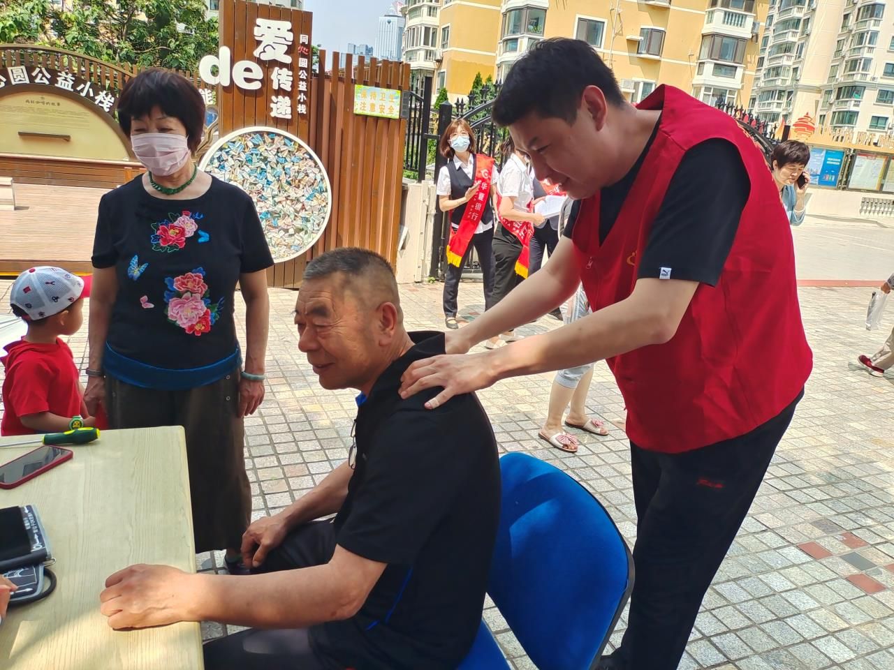65岁的宋大爷笑着说:“家里孩子在外地工作不能回来,今天你们给我测血压、按摩,还提前陪我过父亲节,我心里十分开心,特别感谢你们。”