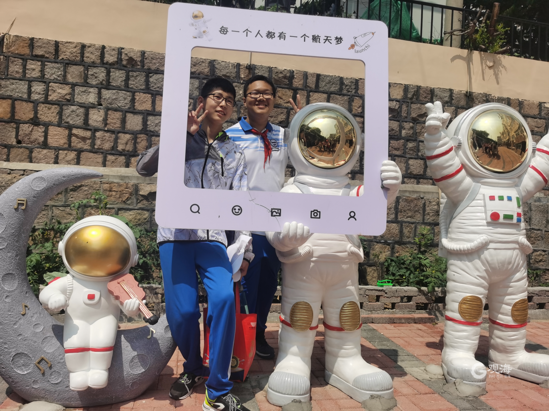 青岛日报社/观海新闻6月15日讯 宇航员登月楼体彩绘、宇宙科普知识彩绘墙、寻梦太阳系装饰灯、打卡雕塑……今天,“点亮航天梦想,逐梦星辰大海”主题活动在辽宁路街道举行,老城大连支路7号院靓了。