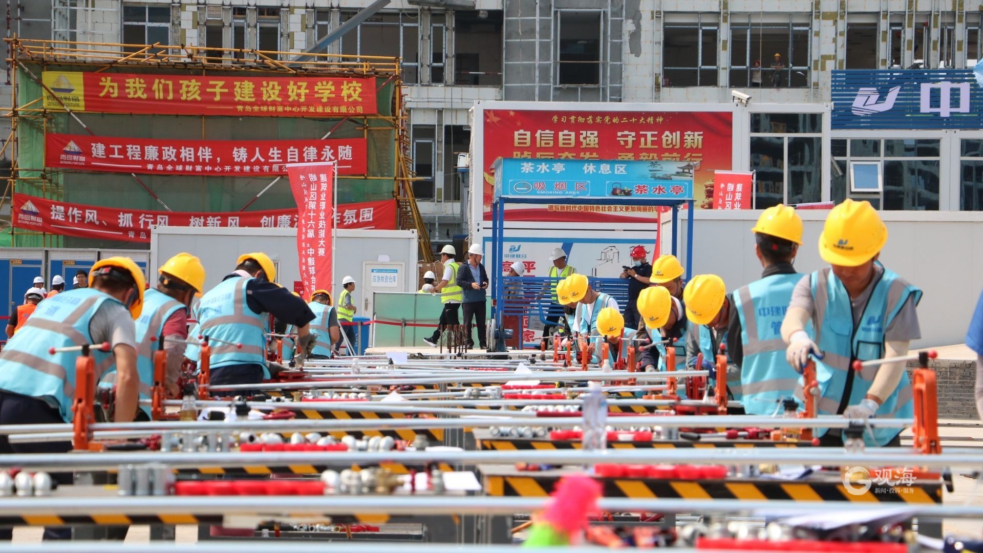 青岛日报社/观海新闻6月17日讯 金属敲击声、钻击声此起彼伏,气氛紧张激烈,各位选手纷纷拿出看家本领,全情投入比赛中……为进一步激励广大劳动者走技能成才、技能报国之路,促进引导建设知识型、技能型、创新型劳动者大军,促使建筑企业长期培养、使用建筑技能人才,深入推进建筑产业工人队伍建设改革,为崂山区打造高素质建筑产业工人队伍,6月16日,崂山区在张村河片区张村河配套中学项目开展“党建引领·崂山区城市更新建设职业技能大比武,崂山区第十六届‘中建联合杯’建筑业职业技能大赛暨崂山区房建施工领域职业技能实操观摩”。