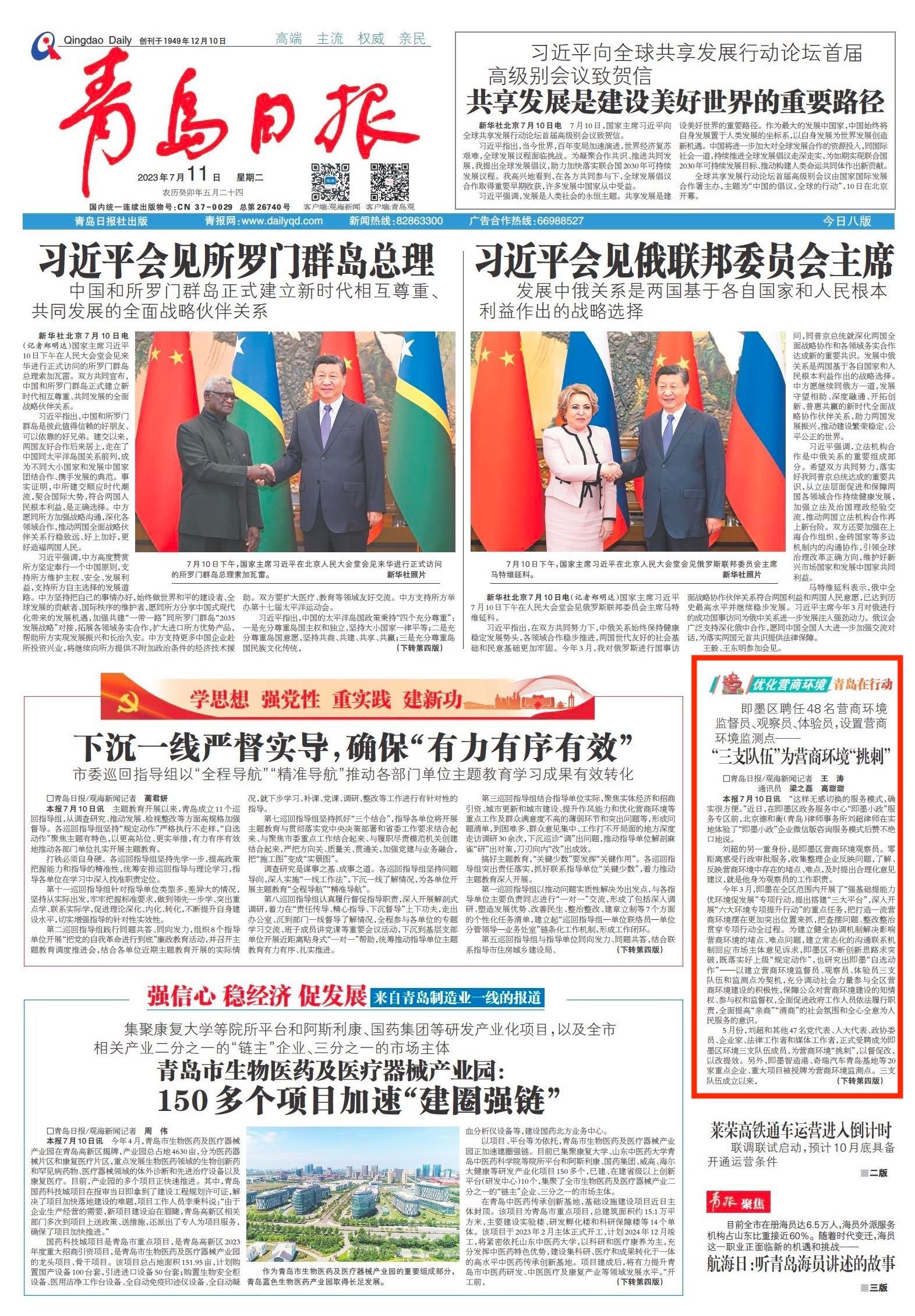 青岛日报2023年7月11日1版