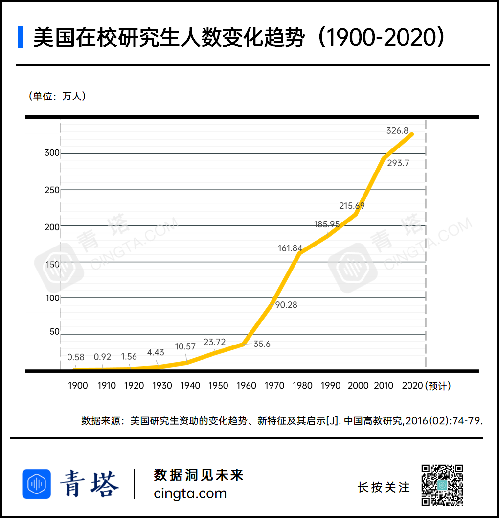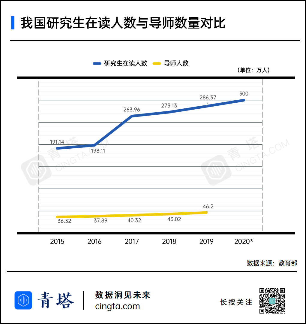 2020年,我国在学研究生人数已经突破了300万大关,预计毕业人数为94.6万。