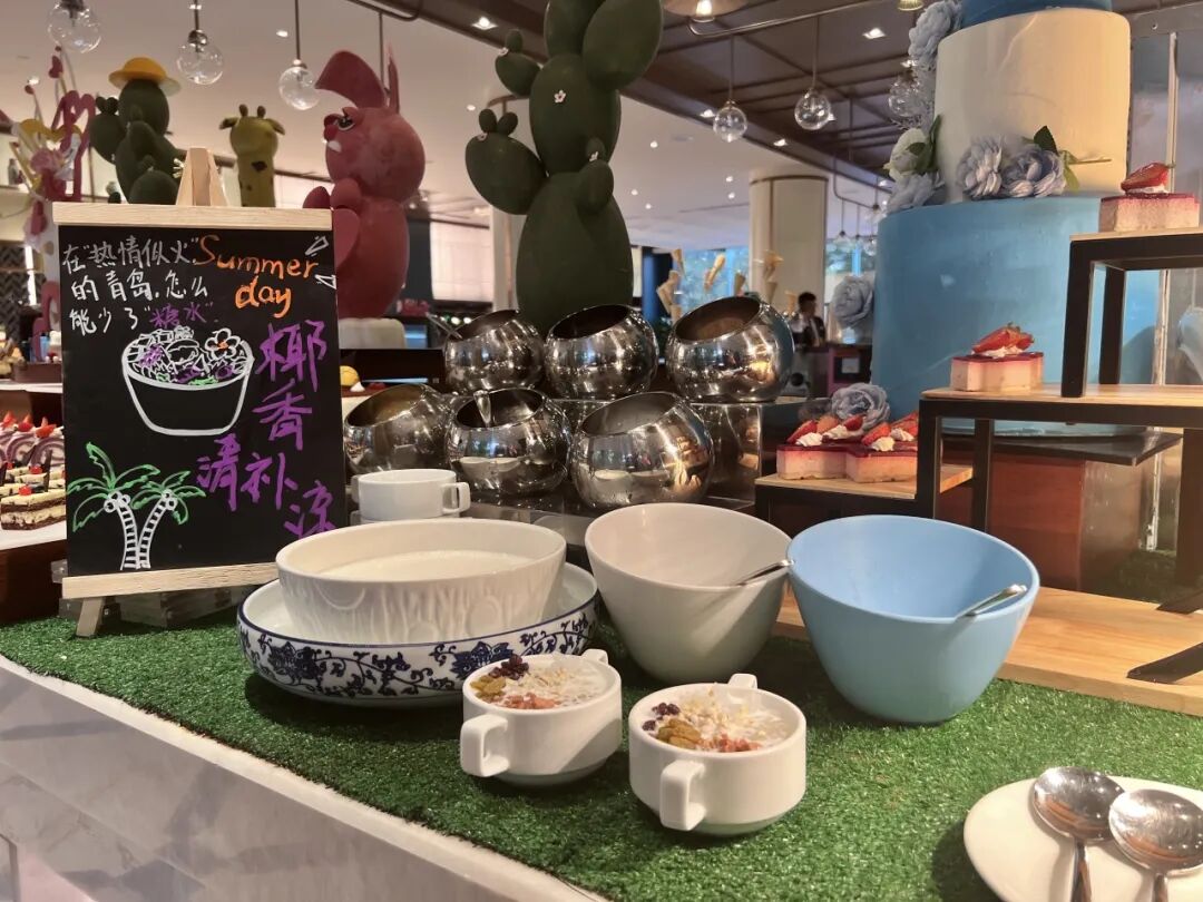 鑫江·温德姆酒店坚守绿色、健康、安全的餐饮理念,根据季节时令,应季出品,自助用餐推出了夏季清凉甜品,供客人DIY品尝,同时为客人贴心准备冰镇饮料以及冰块,满足客人消暑需要。