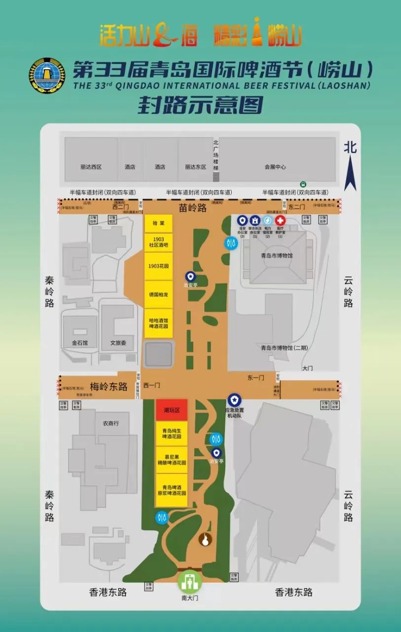 因第33届青岛国际啤酒节举办,崂山会场需占用道路。自2023年7月18日至2023年8月22日苗岭路(云岭路至秦岭路段)南半幅道路实施封闭,由双向八车道改为双向四车道;梅岭东路(云岭路至秦岭路段)实施全程道路封闭。道路封闭期间,封闭区域禁止车辆通行。苗岭路(云岭路至秦岭路段)、梅岭东路(云岭路至秦岭路段)道路两边停车泊位临时取消。请广大交通参与者提前选择绕路通行。
