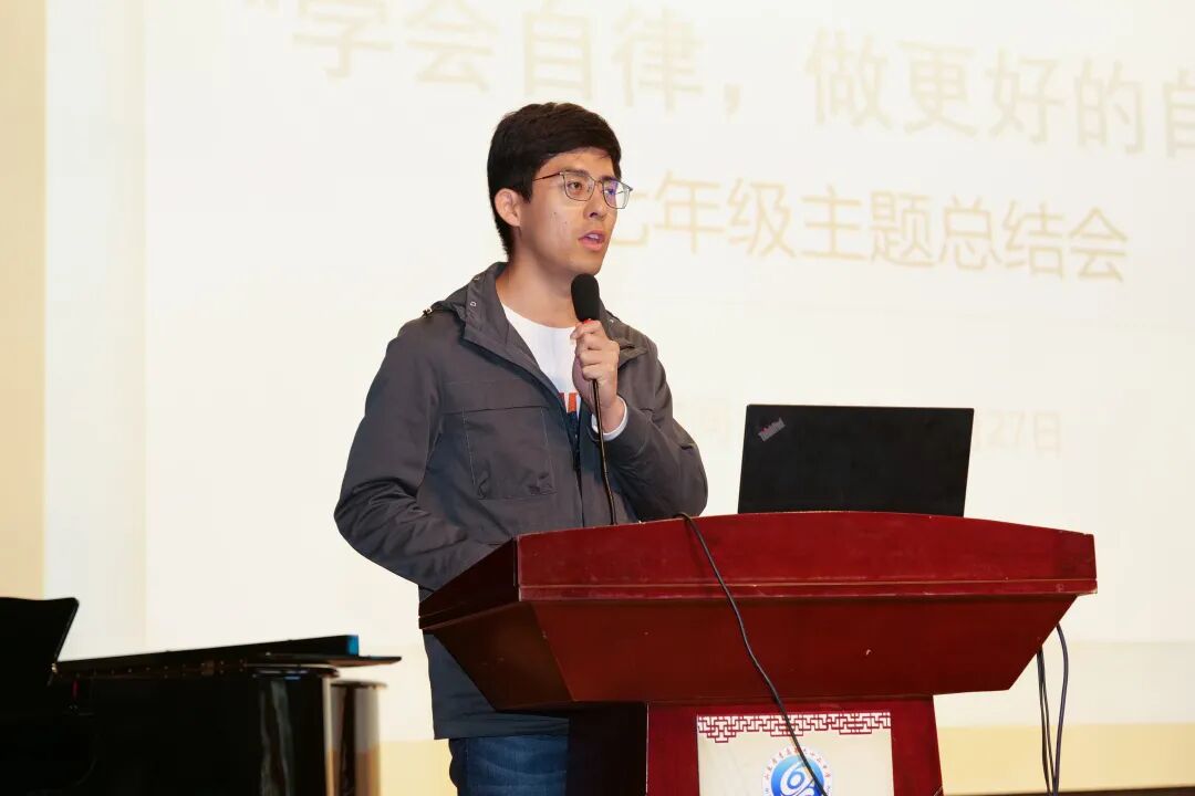 活动最后,青岛62中政教处副主任陈剑飞做了总结,他从“自律”二字谈起,教学生制定一天、一周的计划,告诉同学们,目标、计划、自律是高悬在心中的天平,一定要坚持下去,即便很多时候很想“坏规矩”,想放弃,但挑战过后便是无尽的收获。