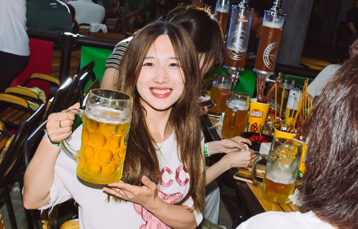 今年,青岛啤酒在崂山会场主要布置了青啤原浆花园,作为啤酒节的C位顶流,以室外花园形式为主,能容纳上千人同时享受啤酒狂欢,同时布置了相对独立的欢聚营地空间,汇聚帐篷营地、海滨星空等各类元素,让消费者尽享惬意的啤酒时光。