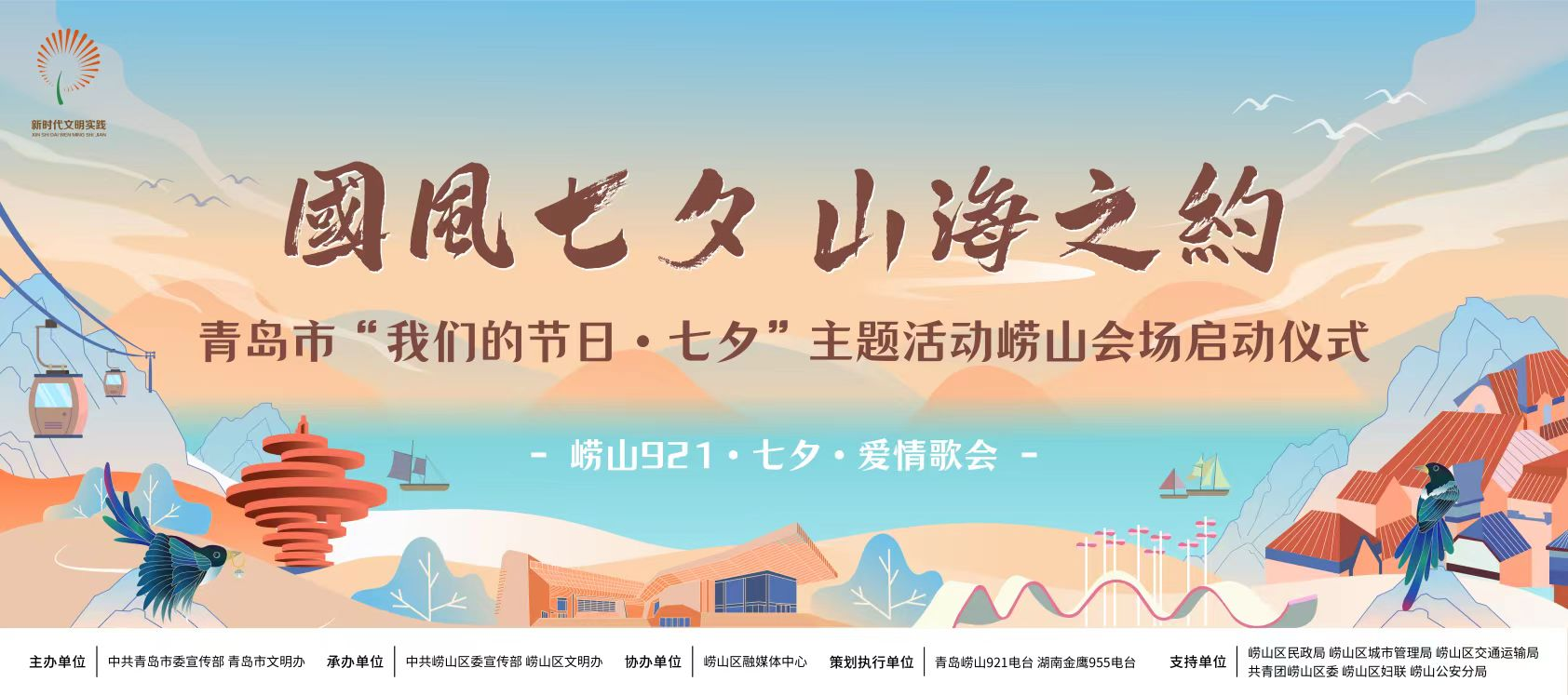 青岛日报社/观海新闻8月16日讯 国风七夕,山海之约。8月22日,青岛市“我们的节日·七夕”主题活动崂山会场启动仪式将在海之恋公园举办。活动由中共青岛市委宣传部、青岛市文明办主办,中共崂山区委宣传部、崂山区文明办承办。活动现场,定制古风婚书、与主持人同台演唱、互动抽奖等活动轮番上阵,惊喜不断,精彩纷呈!