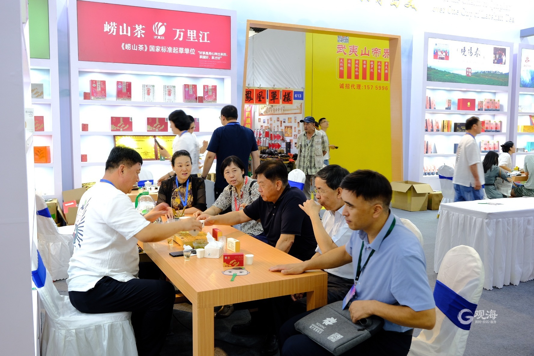 青岛日报社/观海新闻8月18日讯 8月17日,第十五届北京茶博会开幕,崂山区农业农村局局长王妮妮率万里江、晓阳春、崂池云峰、碧海蓝田、崂矿尊圃、崂鼎峰、正礼、初春8家知名茶企共同参展,这也是崂山茶首次集体亮相首都展会。在为期四天的展会中,各茶企将崂山龙须和崂山凤羽等优质产品展示给首都人民,让首都人民体验“一杯崂山茶 万般青岛美”的独特魅力。