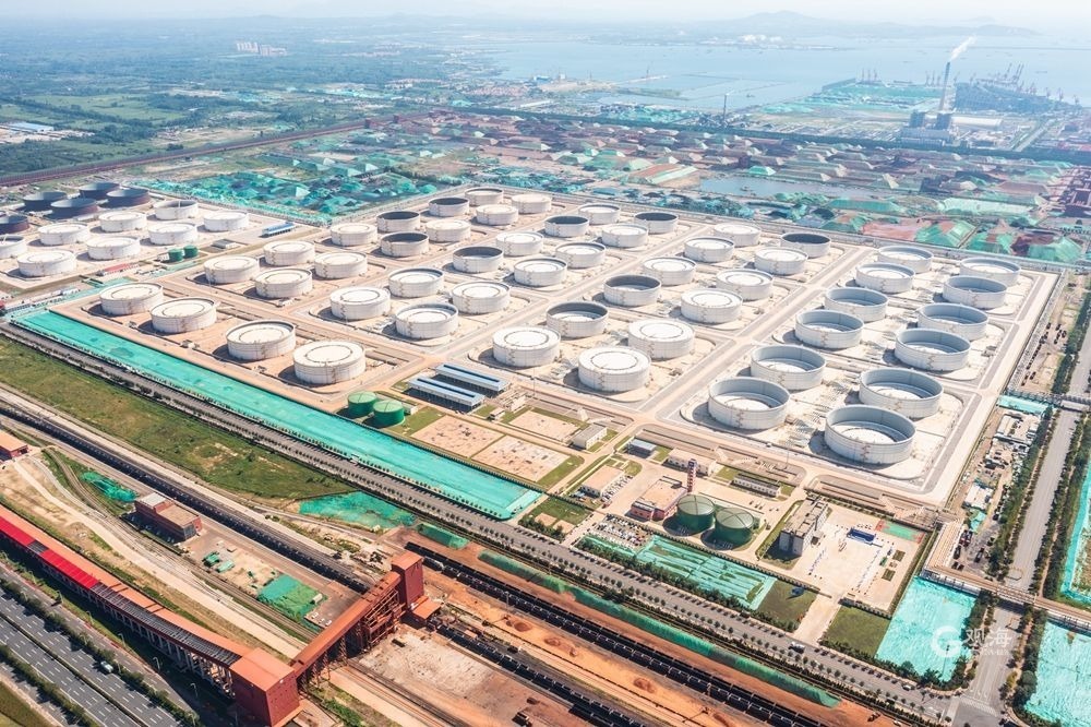 董家口港区原油商业储备库项目总库容520万立方米,总投资超49亿元,共分为三期建设,一期建设16座10万立方米浮顶油罐以及配套工艺泵房、变电所等辅助生产设施,二期建设24座10万立方米浮顶油罐,一期、二期工程分别于2021年12月3日、2022年11月26日投产运营,自建成以来,一期、二期已完成总周转量7981.4万吨。此次投产的三期工程共12座10万立方米浮顶油罐,配套建设1座消防泵房和2座设备间,新增库容120万立方米。