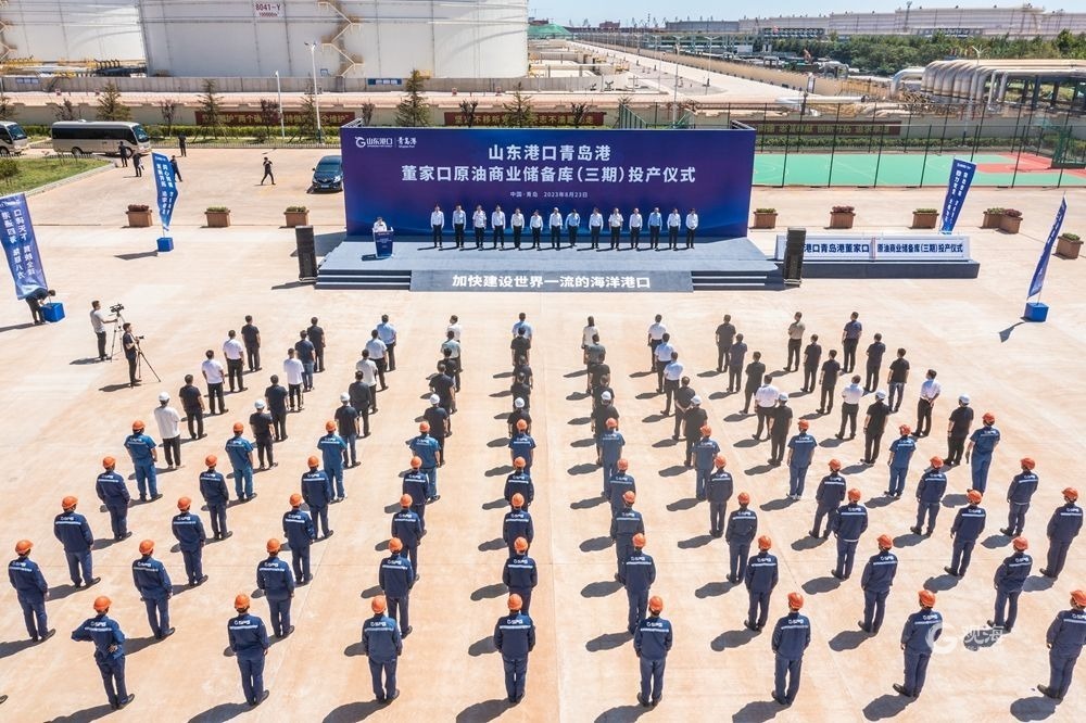 青岛日报社/观海新闻8月23日讯 今天上午,山东港口青岛港董家口原油商业储备库(三期)投产仪式举行。至此,董家口港区原油商业储备库一期、二期、三期工程共计520万立方米原油储罐及配套设施全部建成投产,全国沿海港口单体容量最大的油品库区全部由工程建设转入生产运营阶段,项目投产后董家口港区已建成投产的原油库区罐容设计年存储能力突破1106万立方米,服务山东区域和内陆腹地经济发展能力进一步提升。