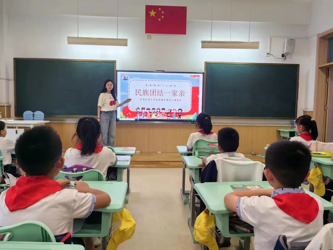 青岛弘德小学在各级统战部门的指导支持下,积极开展民族团结进步示范校创建工作,形成了“小手拉大手”、各族师生团结友爱、互帮互助、共同进步的良好局面。假期里,有的中队在家委的组织下研学红色教育基地、红石榴主题公园,感受民族团结一家亲;有的积极践行“十个一”活动,参加项目式学习——“我为民族代言”盘子画、创编民族乐曲手势舞、参加弘扬八一精神,传承红色基因——“致敬最可爱的人”绘画比赛、跳绳打卡等;有的参加篮球比赛啦啦操表演的,队员们的假期生活可谓是精彩纷呈。