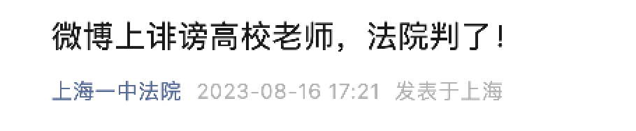 据上海市第一中级人民法院(以下简称上海一中院)消息,日前该院审结了一起网络用户利用信息网络侵害自然人名誉权的案件: