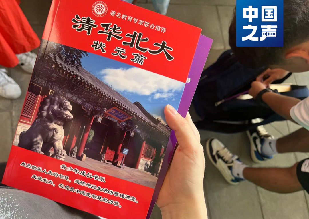 随后,多位家长购买了这些纪念品。其中,青年售卖的名为《清华北大状元篇》《清华北大学习篇》手册,最受欢迎。