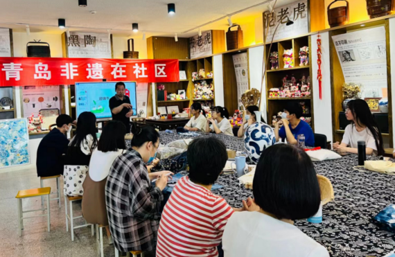 近年来,青岛大学非物质文化遗产研究中心致力于教育研学、文创设计、助力三农,形成“教、研、产、创”一体化实践平台,着力打造《民间美术》《传统纹样》等专业课教室、全校通识课《中国传统手工艺鉴赏与实践》课堂、面向校内外的非遗传播大讲堂、非遗美育教学研究中心,为非遗的传承和创新发展、成果转化开创了新路径,构建了五位一体的非遗美育实践教学模式——博物馆实物教学+调研场景教学+互动体验教学+创新实践教学+项目大赛教学,美育育人的同时,在非遗推广、成果转化、服务社会等方面做出了积极探索。先后获批非遗相关课题立项20余项。