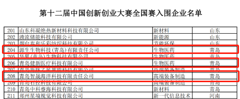 近日,根据地方赛竞赛成绩,经省级科技管理部门推荐,中国创新创业大赛组委会办公室对《第十二届中国创新创业大赛全国赛入围企业名单》进行公示,1494家企业拟入围全国赛,其中初创组398家,青岛赛区企业入围7家。市工研院在孵企业源生生物科技(青岛)有限责任公司、青岛健新医疗科技有限公司、青岛智晟海洋科技有限责任公司榜上有名,涵盖全市初创组入围企业近1/2。