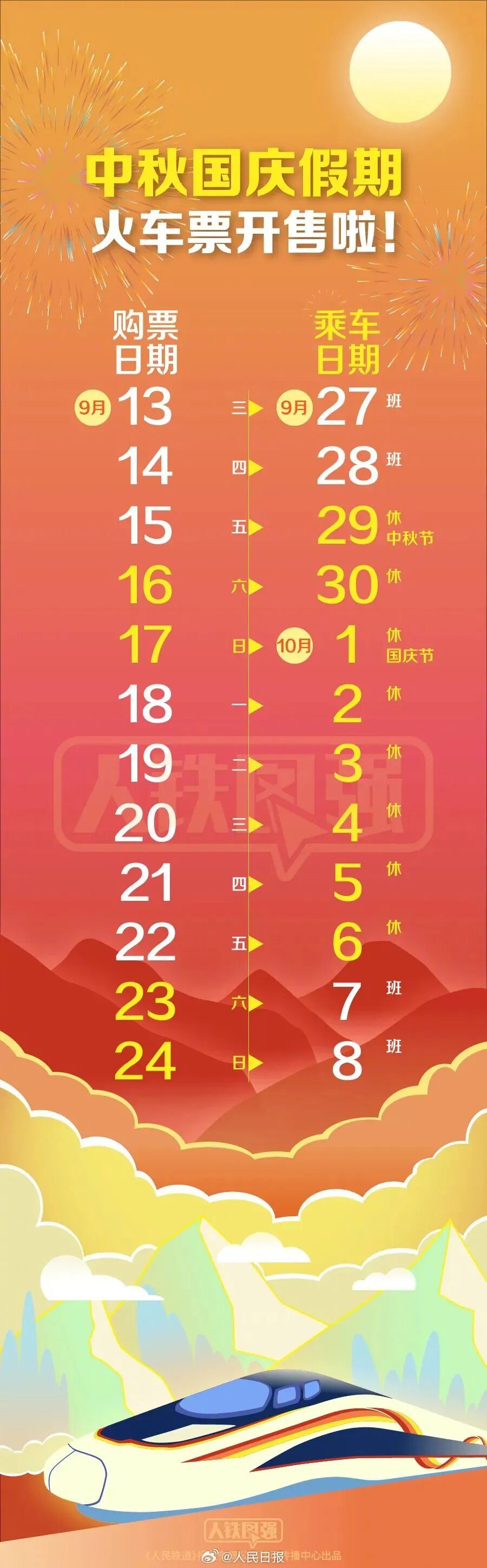 9月13日,铁路12306开始发售中秋国庆黄金周火车票。