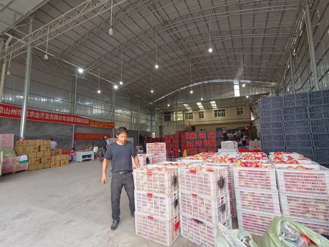 在仁和区大田镇,高速路口就能看到不少收购石榴的大货车。果农开着三轮车,将石榴拉到收购点,称重后再跑第二趟,当天果子全部卖完后再结算。